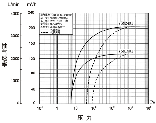 | 幾何抽速 m3/h (L/min) | 50 Hz | 150(2500) | 240(4000) |